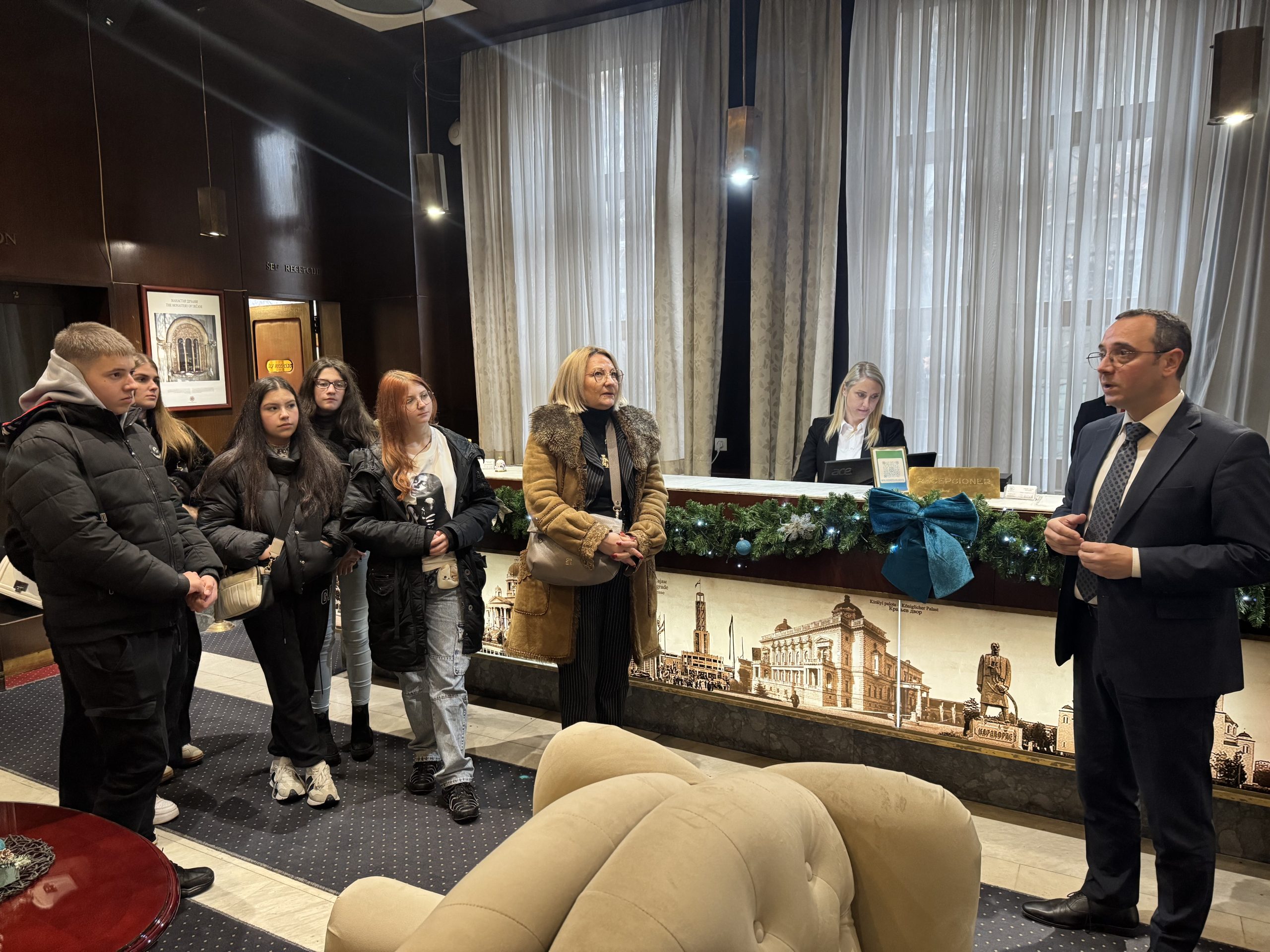 Посебан део програма реализован је у хотелу „Палас“ у Београду, где су ученици имали прилику да присуствују реализацији учења кроз рад у реалном радном окружењу.
