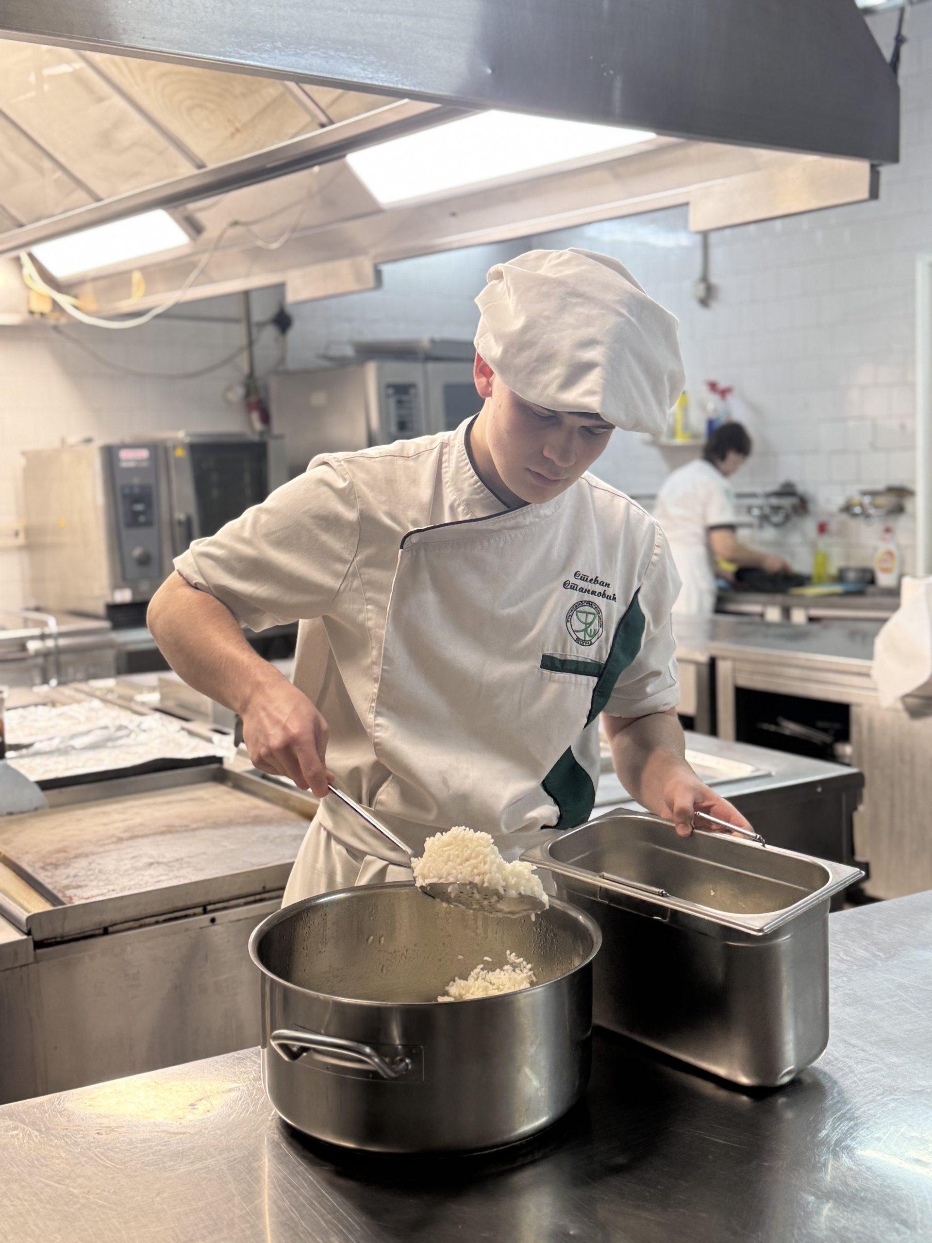 Економско-угоститељска школа „Слободан Минић“ из Аранђеловца унела је мирис и укус на Сајам – ученици у униформама припремали су пекарске и посластичарске производе, уз осмехе и професионалан приступ који краси будуће угоститеље.